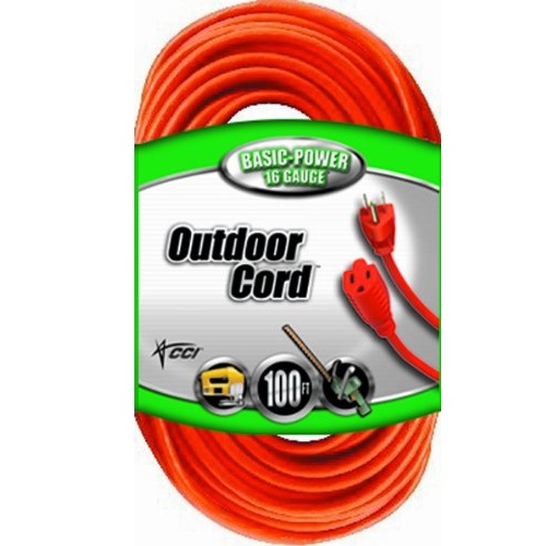 Coleman Cable 02309 16/3 Vinyl Outdoor Extension Cord, Orange, 100-Feet